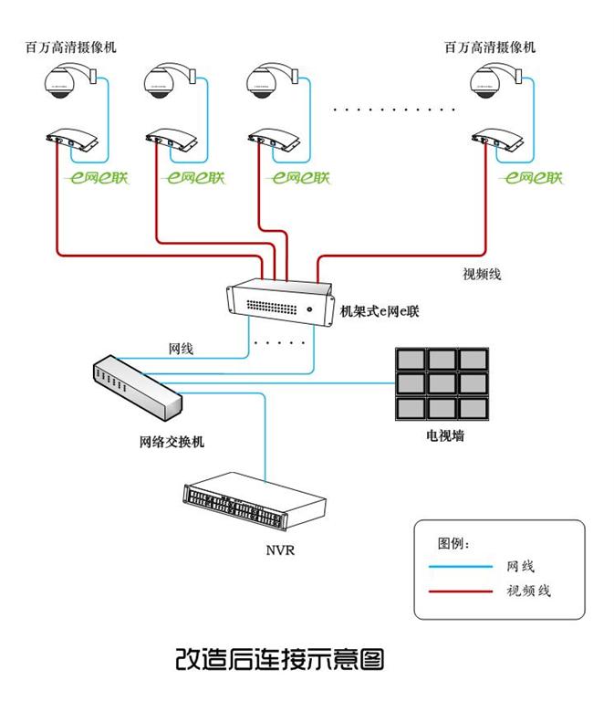 正因为其在国家机关当中具有重要的地位,对于其监控升级改造工程提出了更加严格的要求,无法象新建系统那样大拆大建,不能打扰工作人员的正常办公。采用e网e联的改造方案后,以上用户和工程商头痛的问题都迎刃而解,施工流程和日常巡检维护一样简单,就已将新华社办公大楼的视频监控升级到了百万高清,将其安全管理层次提升到了新的高度。
